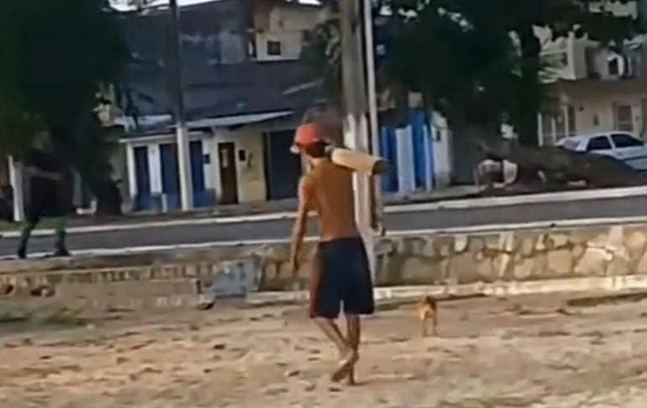 Um homem foi flagrado furtando um banco de praça nessa quinta-feira (15), no bairro do Vergel do Lago, em Maceió. Um registro feito por um popular o homem carregando o banco de madeira nas costas pela praça normalmente, enquanto outras pessoas passavam pelo local.