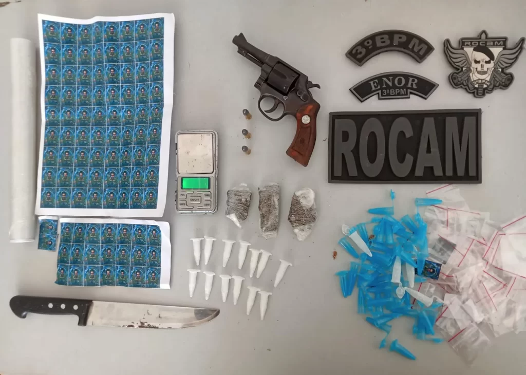 Segundo detalhou o registro do 3º BPM, a guarnição Rocam estava em patrulhamento na região quando, na rua Pedro Álvares Cabral, os militares viram o suspeito com uma mochila marrom tentando se esquivar da atenção dos policiais.