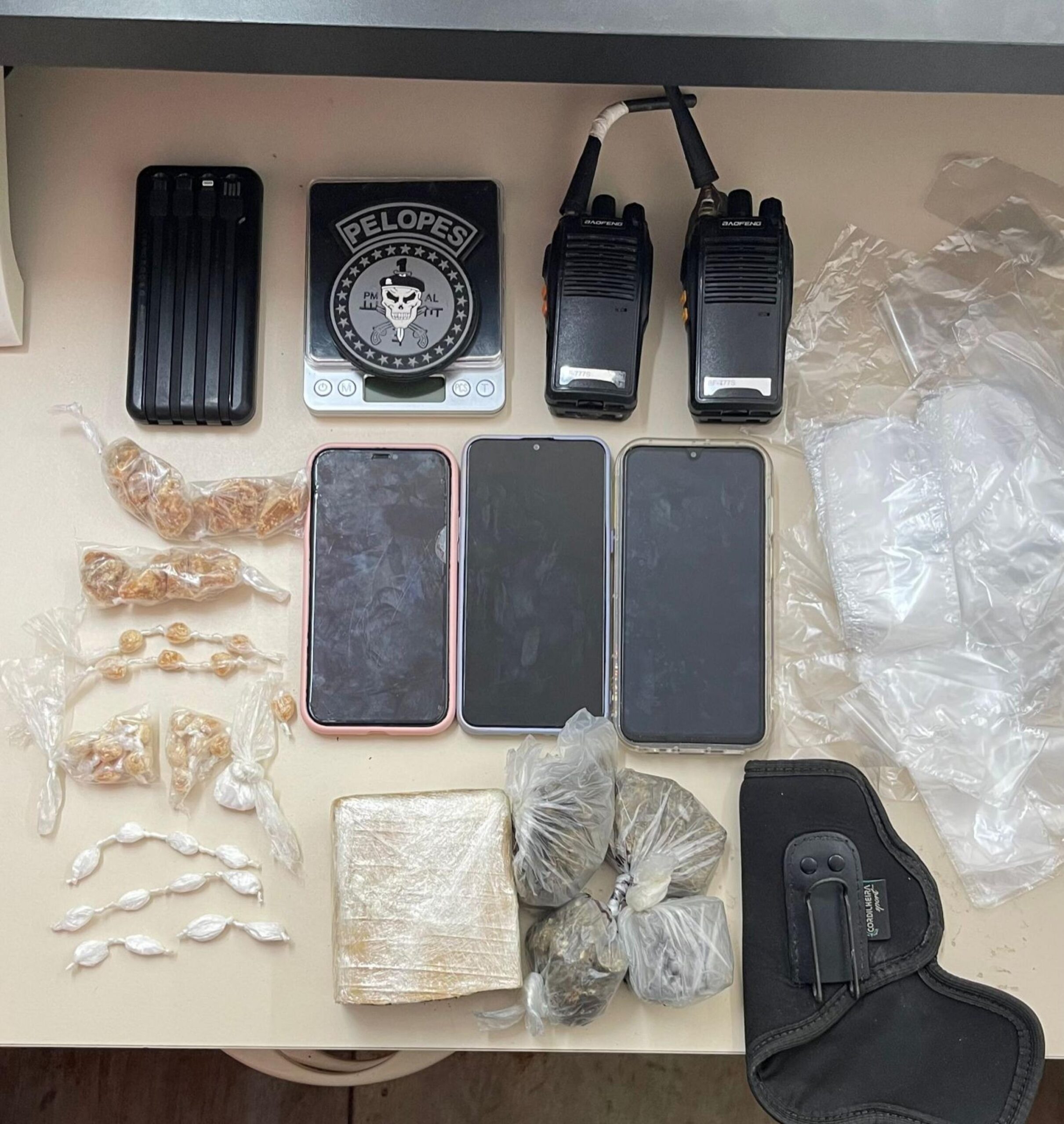Na região, localizada no município de São Miguel dos Milagres, foram apreendidas porções de cocaína, crack e maconha, três aparelhos celulares, radiocomunicadores, uma balança de precisão e um suporte utilizado para portar arma de fogo.