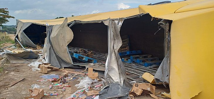 Ainda não há informações sobre o que teria causado o acidente. A polícia também não divulgou informações sobre o grupo de pessoas que teria saqueado a carga.