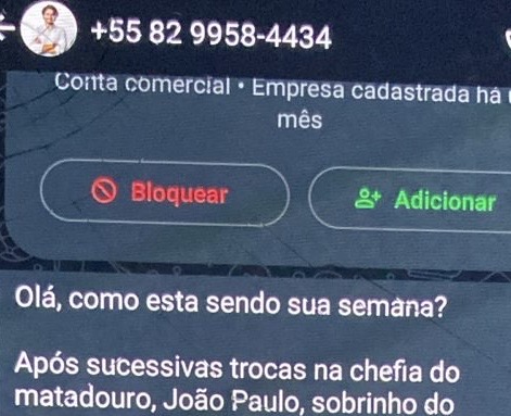 Um homem que se identifica como Luiz, pelo número (82) 99958-4434, dispara mensagens em massa pelo WhatsApp, na tentativa de arranhar a imagem dos dois políticos e fazer com que os eleitores acreditem nessas informações e mudem de ideia com relação ao voto que dariam aos candidatos.