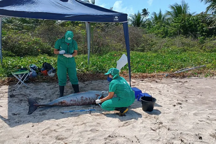 Um boto-cinza foi encontrado morto na manhã desta segunda-feira (16) pelo Instituto Biota de Conservação, em uma praia de São Miguel dos Milagres, localizada no litoral norte de Alagoas. O animal era uma fêmea adulta.