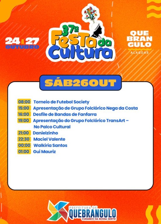 Vem aí a 37ª Festa da Cultura de Quebrangulo