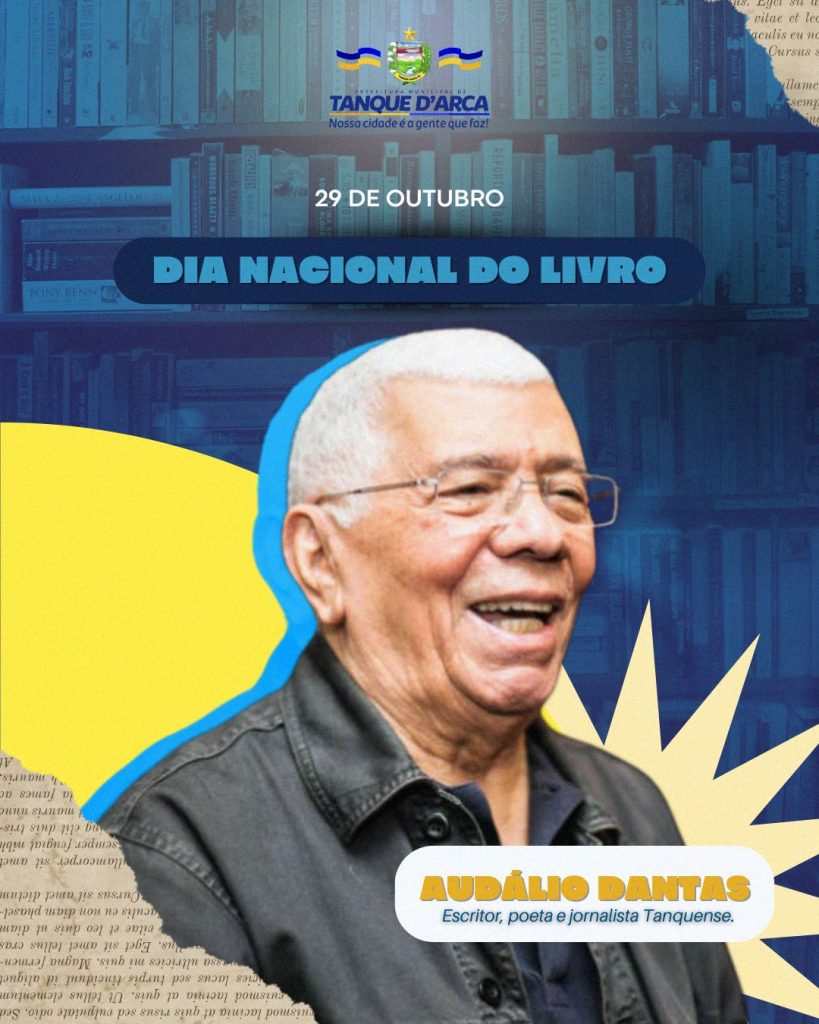 29 de outubro é o Dia Nacional do Livro. Nesta data, a Prefeitura de Tanque d’Arca, por meio da Secretaria de Esportes, Cultura e Turismo, parabeniza todos os autores, em especial ao tanquedarquense Audálio Dantas.