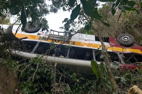 O acidente aconteceu no período da tarde, por volta de 14h30, quando o motorista perdeu o controle da direção e o ônibus capotou na ribanceira, descendo por cerca de 20 metros, até parar em uma área de difícil acesso.