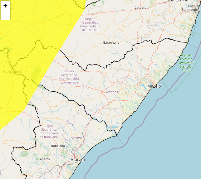 Confira aqui os municípios que estarão sob alerta amarelo: