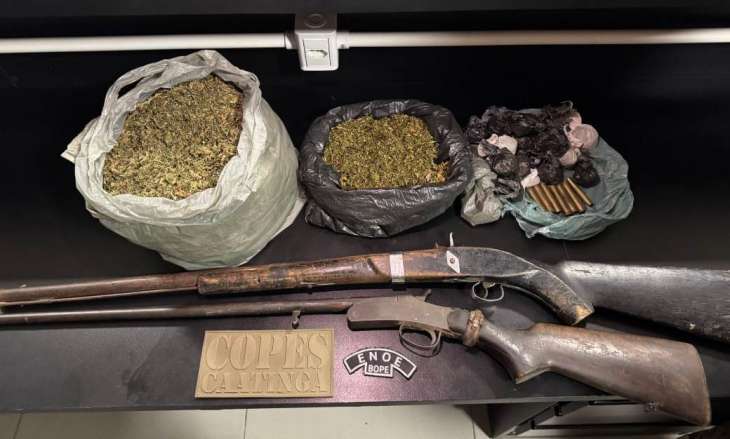 Um dos casos registrados ocorreu por volta de 23h30, no município de Piranhas. Duas espingardas – sendo uma artesanal e outra calibre 36 com sete cartuchos – e de 2,1 kg de maconha foram apreendidos por militares da Companhia de Operações Policiais Especiais do Sertão (Copes). Dois homens foram detidos.