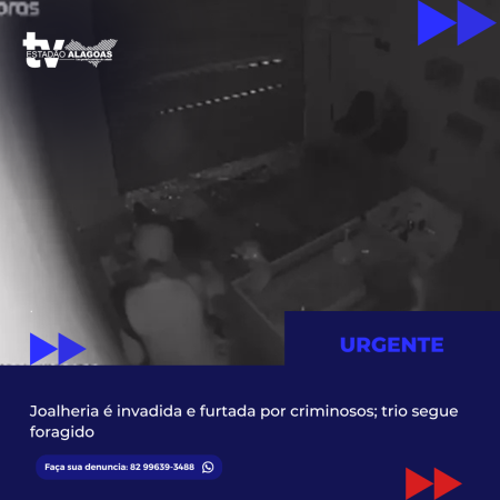 Uma joalheria localizada no Conjunto Graciliano Ramos, no bairro Cidade Universitária, parte alta de Maceió, foi invadida por criminosos na madrugada desta segunda-feira, 13. O crime foi registrado pela câmera de segurança do estabelecimento, que capturou a ação de três suspeitos.