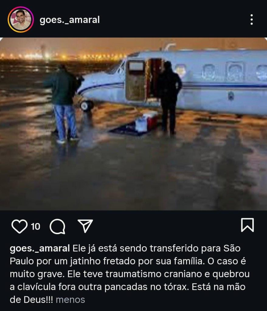 De acordo com relatos de familiares do empresário no perfil Góes Amaral, Sérgio foi socorrido em estado grave e transferido para um hospital em São Paulo, onde permanece internado sob cuidados intensivos.