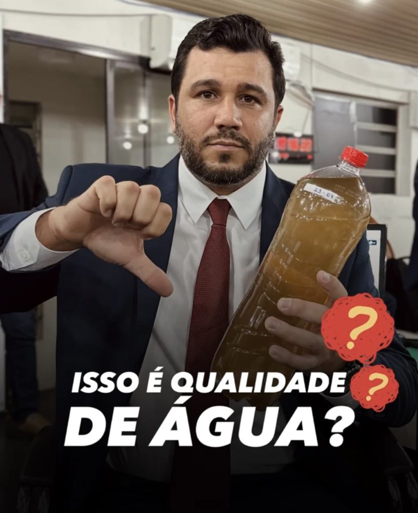 O vereador Lúcio Carlos soltou o verbo e denunciou mais uma vez a situação revoltante da água que chega às torneiras dos moradores de Palmeira dos Índios. Em vídeo gravado no Conjunto Natércio Viana, ele exibe uma garrafa com o que deveria ser água potável — mas o conteúdo é, nas palavras dele, “barro em forma líquida”.