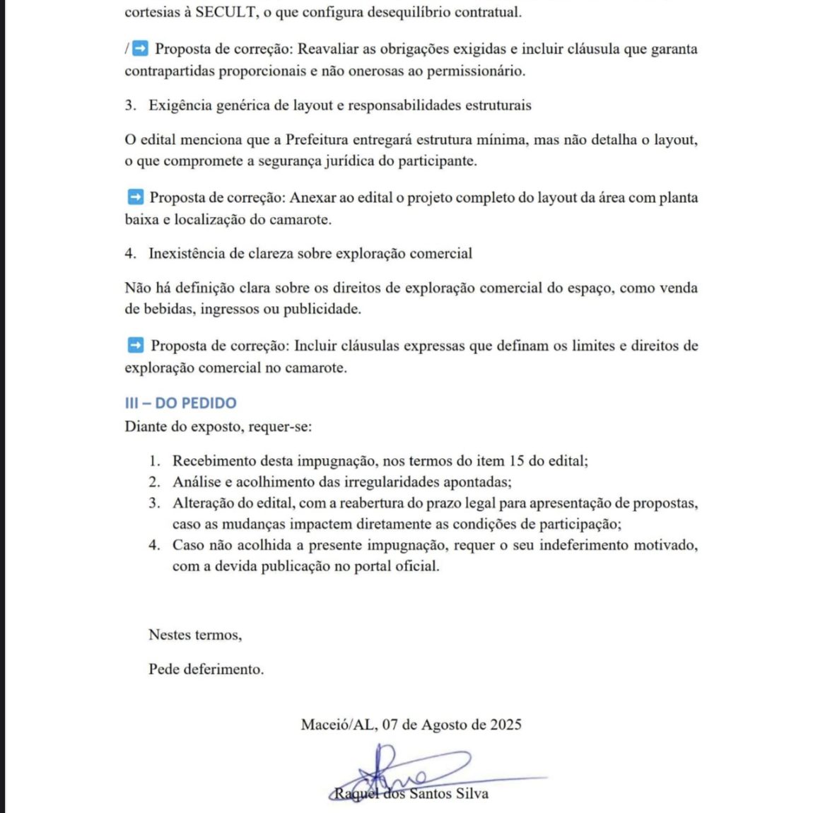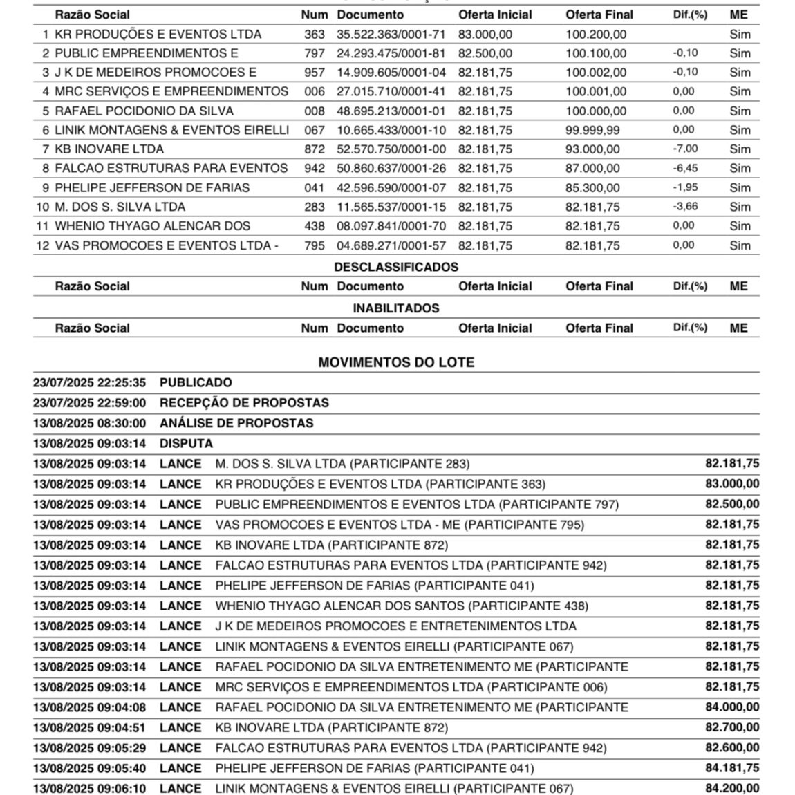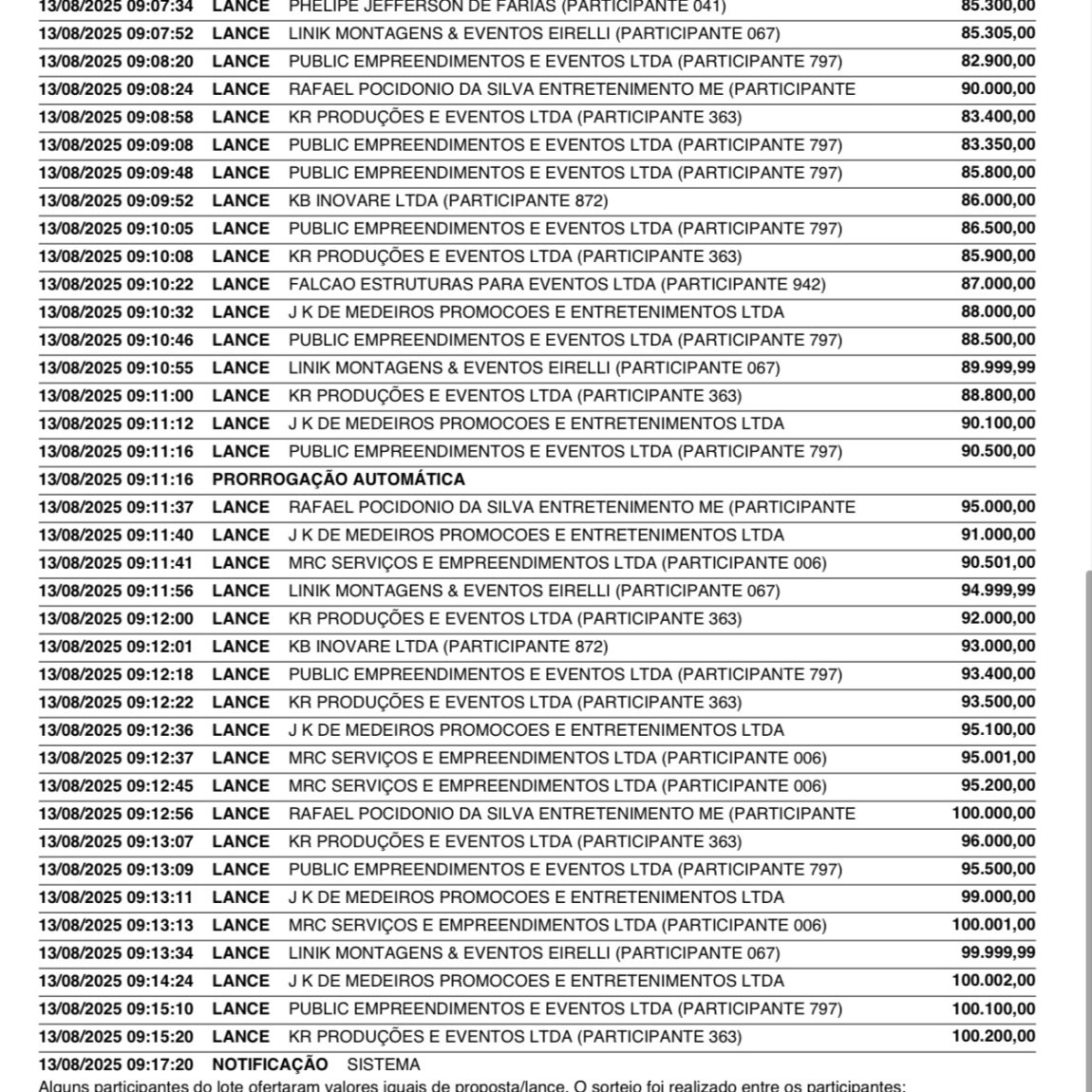O camarote privado do Festival de Inverno de Palmeira dos Índios (FIPI 2025) não acontecerá, mesmo após a empresa KR Entretenimento, de Goiana (PE), ter vencido o pregão eletrônico nº 018/2025 com proposta de R$ 100.200,00. O pregão, publicado às pressas poucos dias antes do evento, foi impugnado pela própria prefeitura, levando a empresa a desistir do negócio.