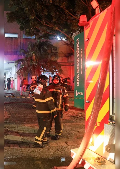 Durante a ocorrência, funcionárias da maternidade aguardaram do lado de fora, enquanto os bombeiros realizavam o combate às chamas e a ventilação dos ambientes afetados.