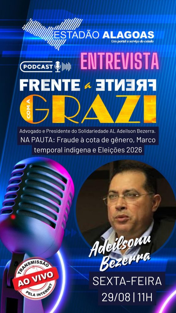 O advogado e presidente estadual do Solidariedade em Alagoas, Adeilson Bezerra, participou do podcast Frente a Frente com a Grazi, do portal Estadão Alagoas, na última sexta-feira (29). Durante a entrevista, transmitida ao vivo, Bezerra comentou temas polêmicos que movimentam o cenário político local e nacional.