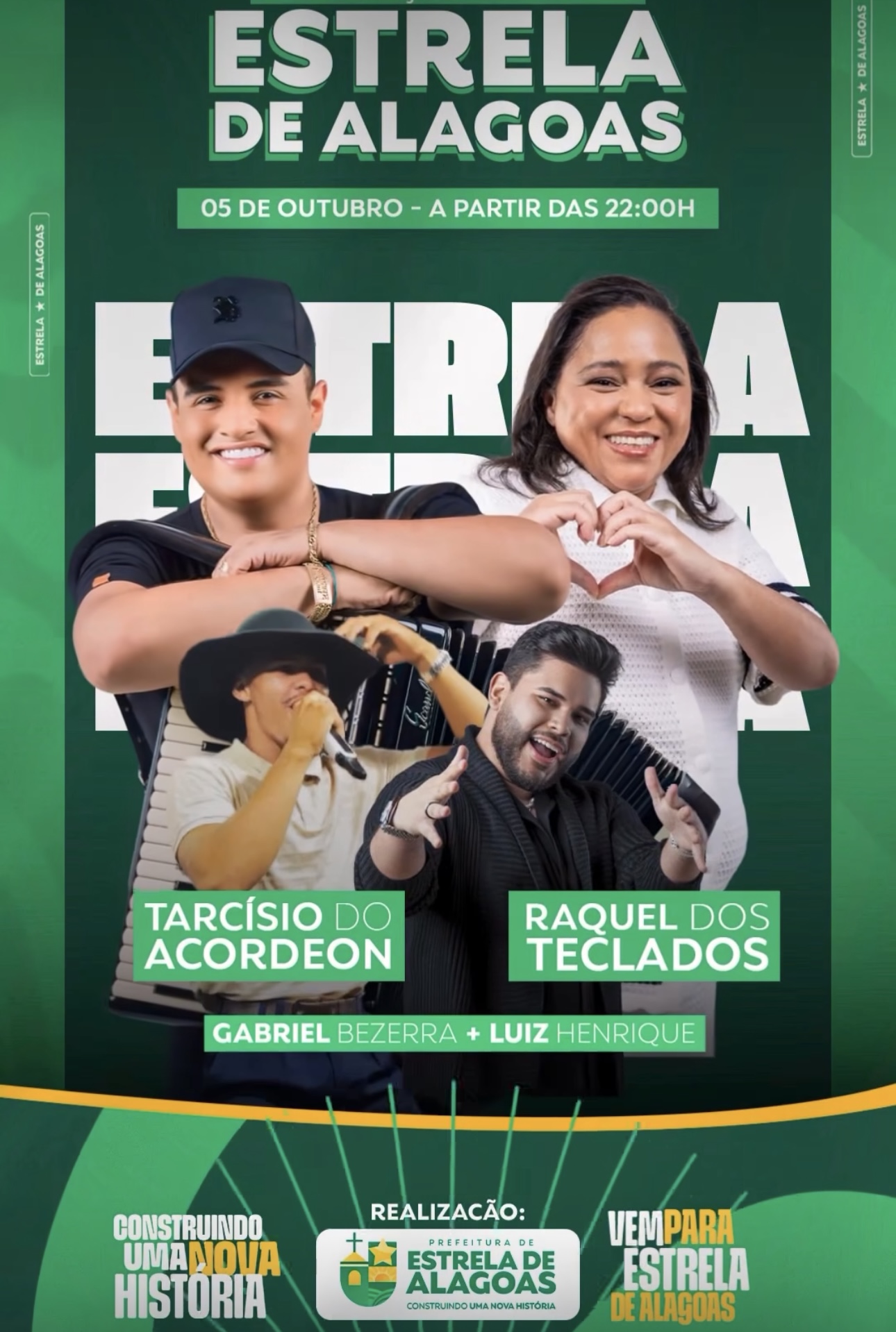 A Prefeitura de Estrela de Alagoas convida toda a população para participar e celebrar juntas as conquistas do município, reafirmando o compromisso de construir uma nova história para a cidade.