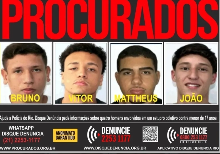 Polícia do Rio de Janeiro divulga fotos de foragidos investigados por estupro coletivo de adolescente em Copacabana