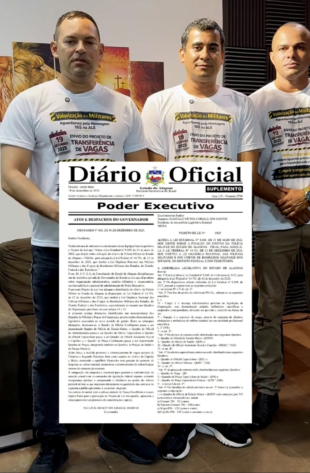 Policiais e bombeiros militares de Alagoas intensificaram a cobrança ao Governo do Estado, nesta sexta-feira (27), para que seja encaminhada, com urgência, à Assembleia Legislativa, a mensagem governamental nº 165/2025, que trata da Lei Orgânica da Polícia Militar e do Corpo de Bombeiros.