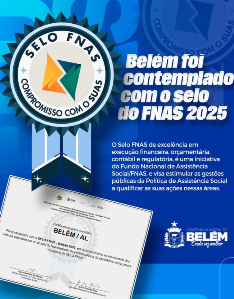 O município de Belém foi reconhecido nacionalmente ao conquistar o Selo FNAS 2025, certificação que atesta a excelência na execução financeira, orçamentária, contábil e regulatória dos recursos destinados à assistência social.