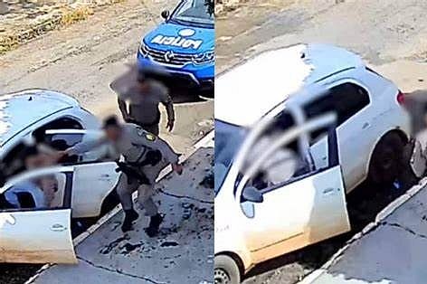 Um dos agentes tenta impedir a entrada do motorista no veículo, acompanhando-o. No entanto, o suspeito recusa-se a parar e foge, arrastando o policial com a porta aberta.