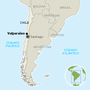 A cidade portuária chilena de Valparaíso fica a 120 km da capital Santiago