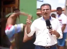 Repórter de TV nordestina é agredido com voadora durante reportagem