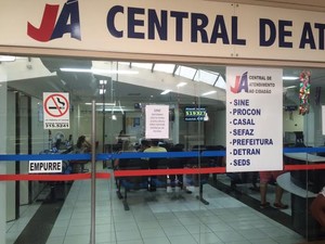 O posto de atendimento do Já no Shopping Farol, aberto ao público desde as 9h, ainda não havia conseguido realizar nenhum atendimento desde até o final desta manhã.