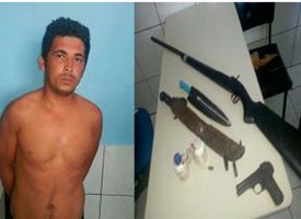 Adalberto foi preso no bairro Eldorado, em Delmiro Gouveia, com uma espingarda, uma pistola, uma faca peixeira, um facão e várias munições.
