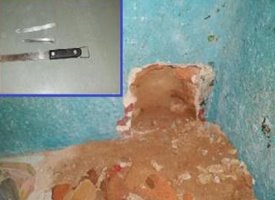 Sob o comando do chefe de Operações José Mauricio, a equipe da 3ª DRP encontrou numa das celas, que abriga 13 presos, parte de uma colher, um cabo de uma panela e um pedaço de alumínio com os quais os detidos estavam cavando um buraco na parede da cela.