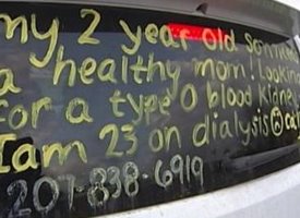 A decisão de uma mulher do estado do Maine, nos Estados Unidos, de escrever uma mensagem no vidro de seu carro para encontrar um doador de rim teve bom resultado.