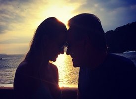 Na foto compartilhada na rede social, o casal aparece juntinho à beira-mar em frente a um lindo pôr-do-sol. “10 dias”, escreveu a modelo na legenda.