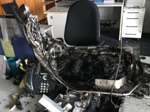 O fogo começou devido a um curto-circuito no aparelho de ar-condicionado. O equipamento caiu sobre uma mesa de trabalho.
