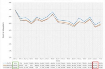 Já nesta semana, os dados indicam uma tendência de declínio em Alagoas, com percentual de 44,9% no índice de isolamento.