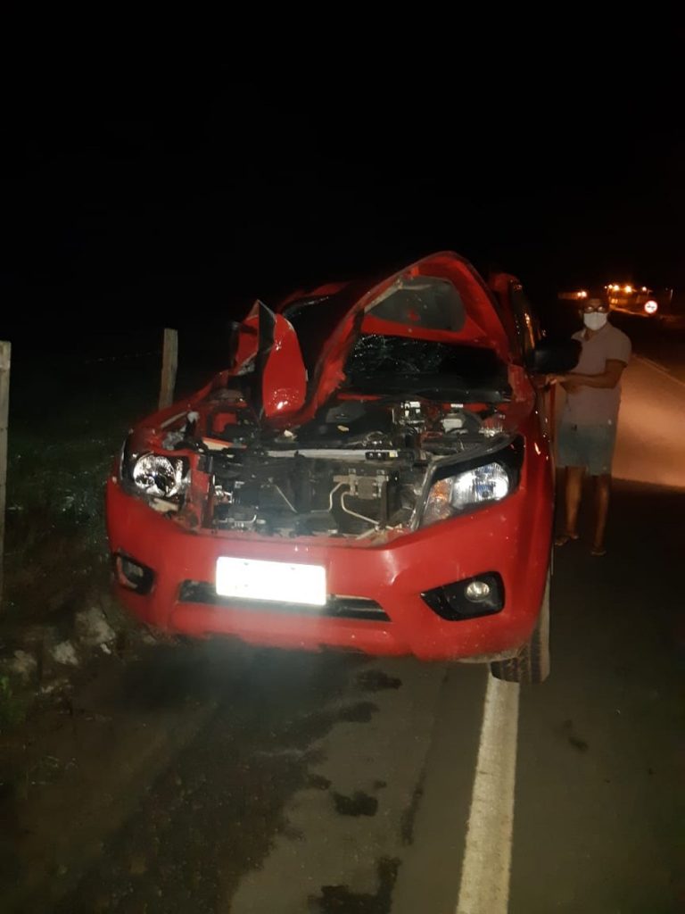 De acordo com militares do Batalhão de Polícia Rodoviário (BPRv), o condutor da Frontier de cor vermelha não conseguiu desviar do animal na pista e o atropelou.