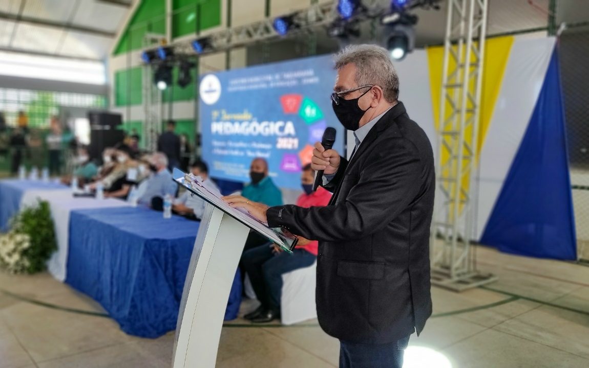 Gilberto reforçou a importância do momento de interação entre os profissionais da educação para a troca de experiências e saberes para o enfrentamento de mais um ano de atividades.