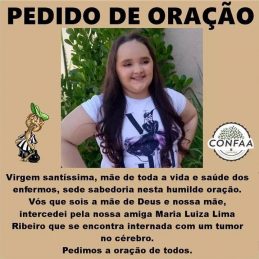 A menina Maria Luiza Lima Ribeiro, de 12 anos, morreu na noite desta segunda-feira (22), na Santa Casa de Maceió, após lutar contra um tumor no cérebro.