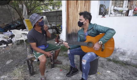A equipe do Fantástico, então, preparou uma surpresa para o carroceiro: trouxe Zezé di Camargo para conhecer o fã. Rogerinho, emocionado, tirou foto, pediu autógrafos, e ganhou conselhos do ídolo. “Tô me tremendo aqui cara, não acredito nisso não”, disse, emocionado. A dupla, inclusive, cantou junto uma das autorias do carroceiro.