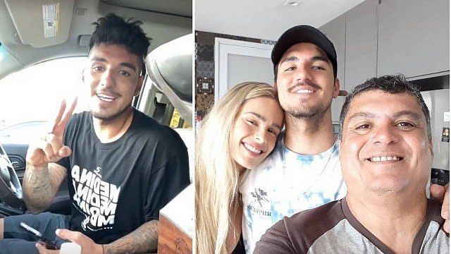 Feliz da vida após a conquista do tricampeonato mundial de surfe, Gabriel Medina fez questão de mandar um recadinho todo especial para o pai, Cláudio Maresias. Já no interior do carro, onde também estava o troféu da competição, o atleta demonstrou o carinho pelo pai.