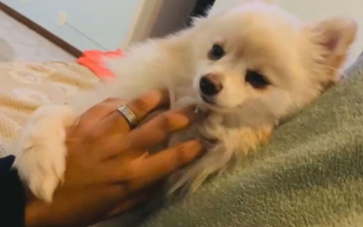 Em vídeo publicado nas redes sociais, a empresária Larissa Marques chora com o cão no colo. “Eles devolveram meu filho morto”, diz, aos prantos.