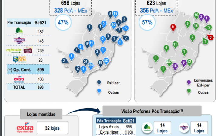 “A bandeira Extra Hiper será descontinuada, e as lojas não abarcadas pela transação serão convertidas em formatos com maior potencial de rentabilidade”, informou.
