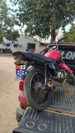 Durante o flagrante, os policiais encontraram uma motocicleta com adulteração de chassi.