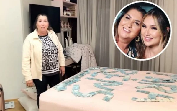 Virgínia Fonseca resolveu presentear a mãe com uma surpresa surreal. A matriarca da família completou 56 anos de idade e ganhou R$ 56 mil da filha, tudo em notas de R$ 100. Ao ver as notas sobre a cama, formando a palavra “parabéns”, Margareth Serrão brincou: “Estou rica!”.