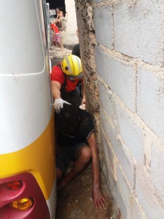 Homem fica ferido após ser empurrado contra muro por ônibus escolar e ficar imprensado, em São Miguel dos Campos
