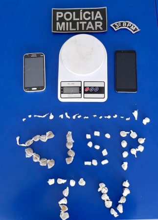 No total, a polícia apreendeu, com eles, 17 pedrinhas de crack, 46 trouxinhas de maconha, uma balança digital, dois celulares e uma faca-peixeira.