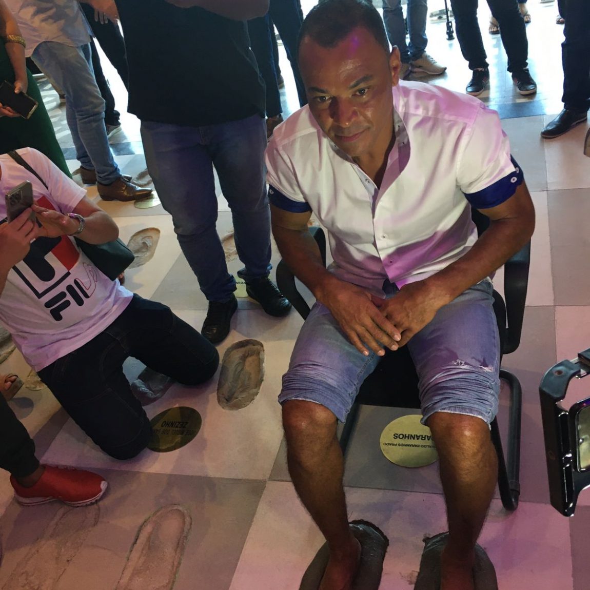 Cafu deixa a marca de seus pés no Hall da Fama do Estádio Rei Pelé