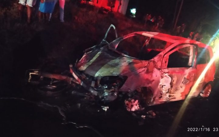 Moto e carro pegam fogo após colisão e uma pessoa morre em Bélem, AL