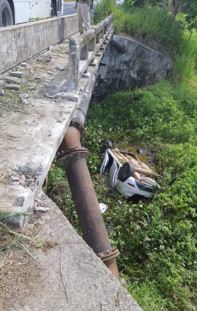 Segundo o Corpo de Bombeiros, o acidente ocorreu por volta de 6h50. Após cair da ponte, o veículo ficou com as rodas viradas para cima.