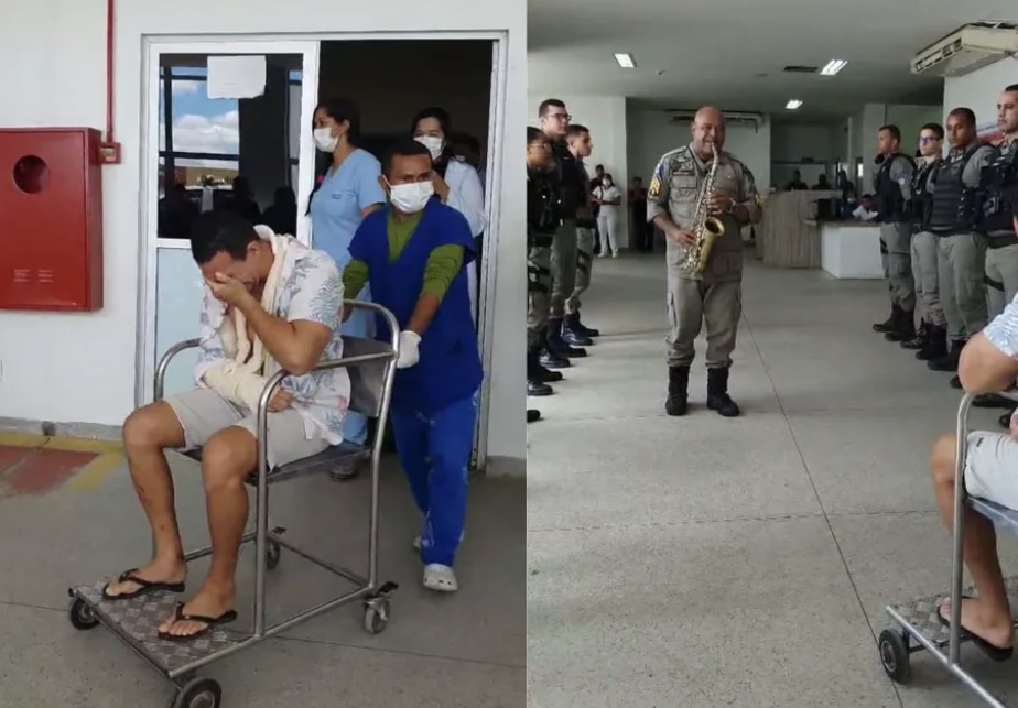 PM que foi atropelado em Arapiraca tem alta de hospital e recebe homenagem de colegas