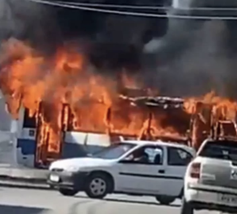 Ônibus incendiado na Rua Guarujá, na altura da Rua Groselha;