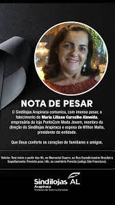 A causa da morte não foi confirmada no comunicado, que informou que o velório terá início às 9h, no Memorial Osacre, na rua Expedicionário Brasileiro. O sepultamento está programado para as 16h, no Cemitério Previda (antigo São Francisco). O presidente do Sindilojas Arapiraca, Wilton Malta, esposo de Maria Liliane, perde não apenas uma parceira de vida, mas uma colaboradora incansável pela causa do comércio na região.