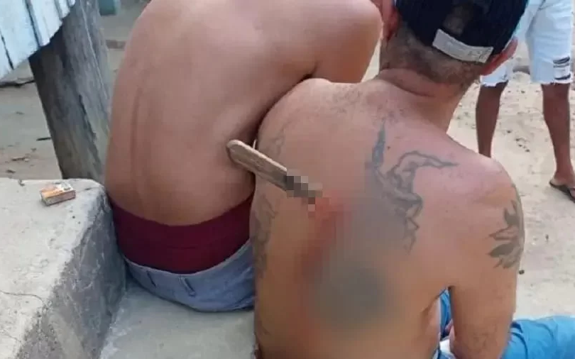 Homem esfaqueado após discussão fica com faca cravada nas costas