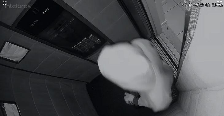 A polícia trata a pessoa, que também foi flagrada pelas câmeras no elevador do prédio, como a principal suspeita do crime. O suspeito tomou o cuidado de descer dois andares pela escada, quando deixou o apartamento da vítima. Ele tomou o elevador quando estava no 8º andar. Nas imagens, é possível ver que o suspeito deixou o prédio às 1h30 da madrugada de sexta-feira, 24 Como ele mantém a cabeça coberta por um capuz o tempo todo, ainda não foi possível sua identificação.
